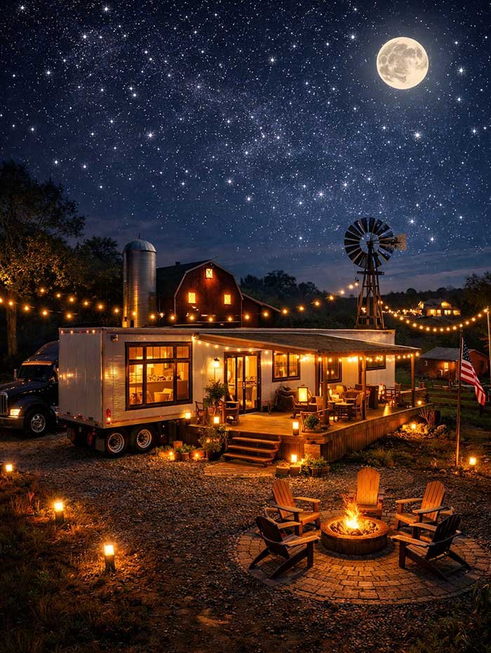 The tractor trailer home is compact, efficient, and thoughtfully designed.