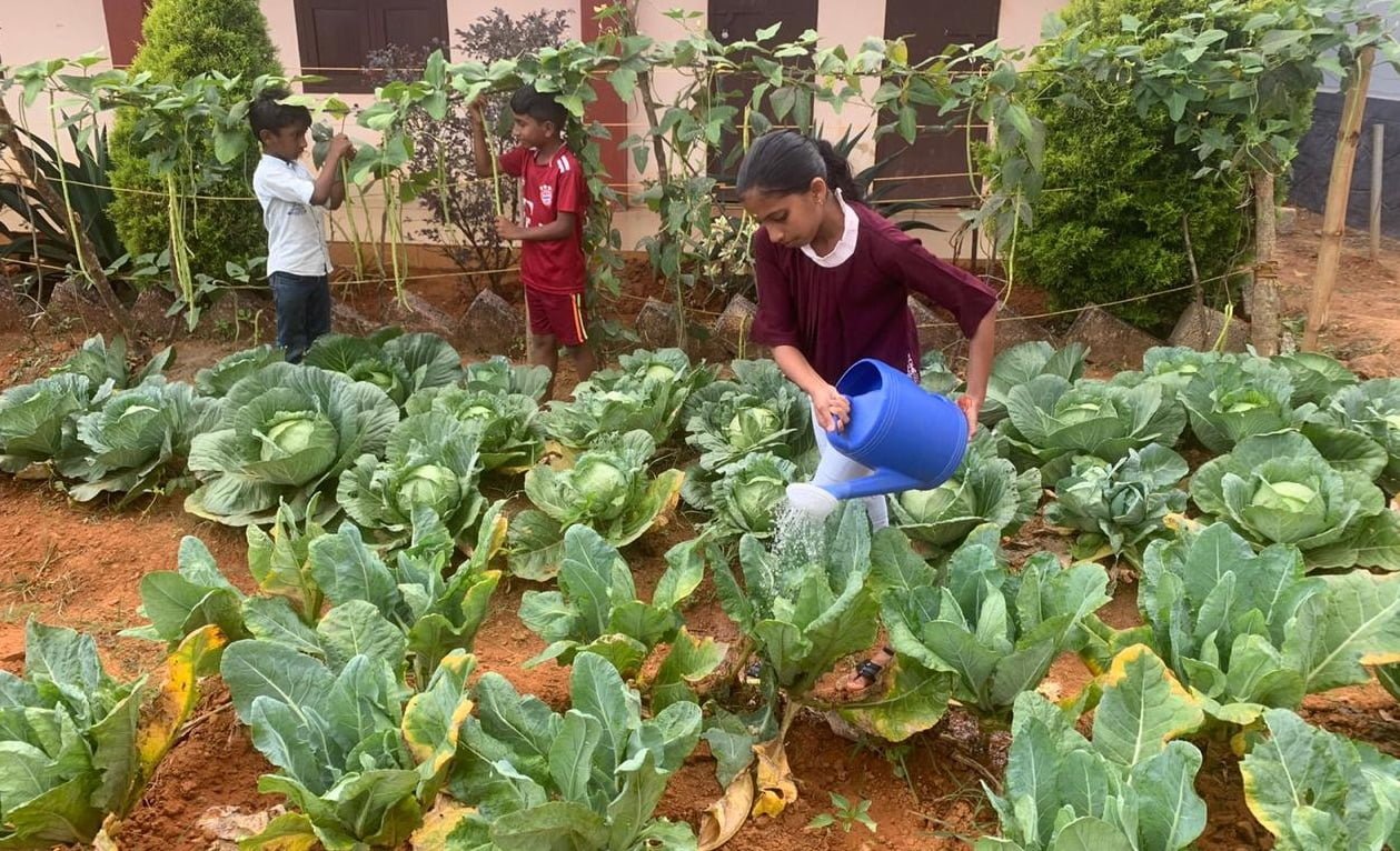 Primary (Classes 1–5): Seed sowing, animal care basics, veggie harvest, nature bingo, storytelling under trees, etc.