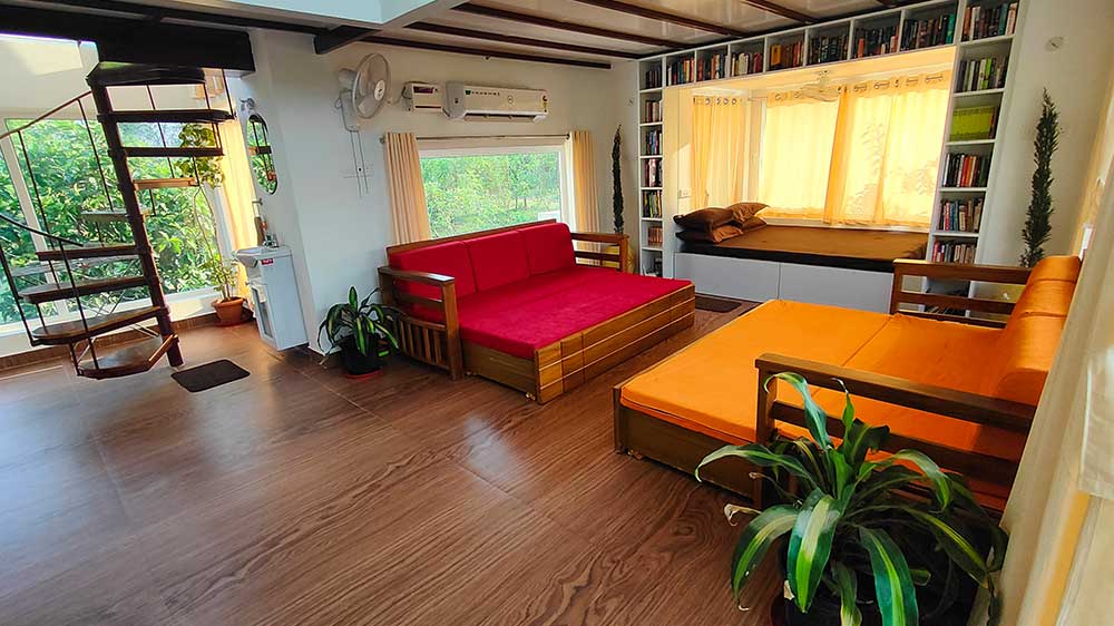 We have three farmhouses and two pods. All are located in different parts of the 13-acre farm giving total privacy. We encourage you to view the gallery to look at how our farmhouses and pods look. www.VaksanaFarms.in/gallery